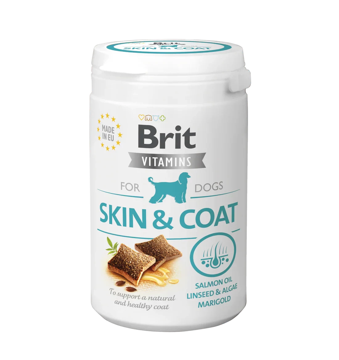 Összetétel: lazacfehérje (26 %), borsóliszt, növényi glicerin, szárított alga (6 %, Schizochytrium limacinum), lazacolaj (5 %), szárított körömvirág (4 %), lenmag (4 %), hidrolizált csirkemáj, kollagén, melasz.